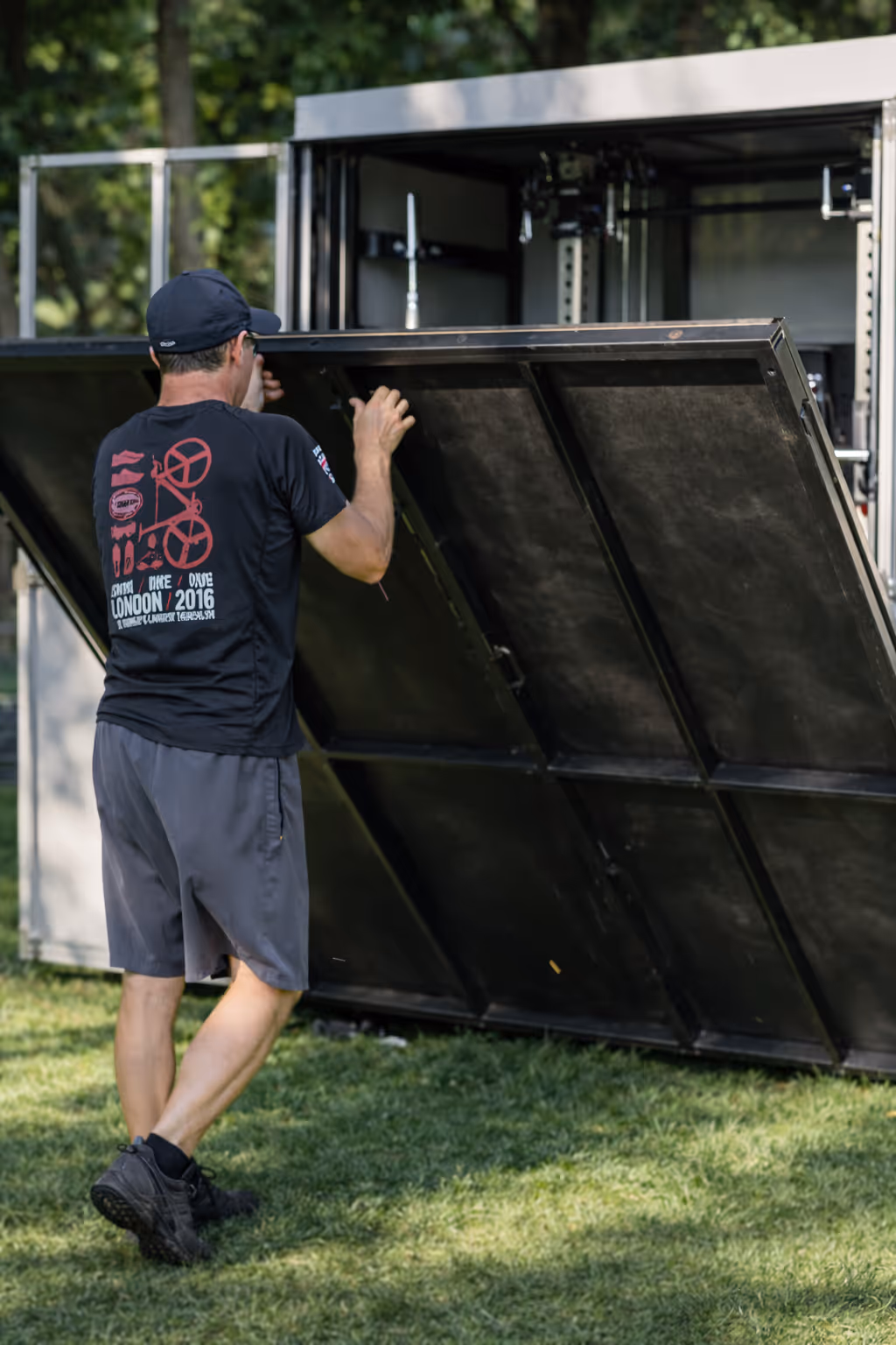 Foundations: SteelShack and its integrated weight equipment require installation on a solid foundation. For softer ground, such as grass, ground screw piles are the preferred solution, although a 2.5 m x 1 m concrete slab can also be used. Our team is available to guide you through the process.